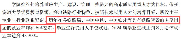 铁道大学四方学院位于省市,光看这个校名,良多家长可能就曾经猜到为什么这所高校会有很好的就业。学校最新发布的本科讲授质量演讲明白提到:积年正在各铁局、中国中铁、中国铁建等具有铁布景的大型国企就业率均正在50%摆布!