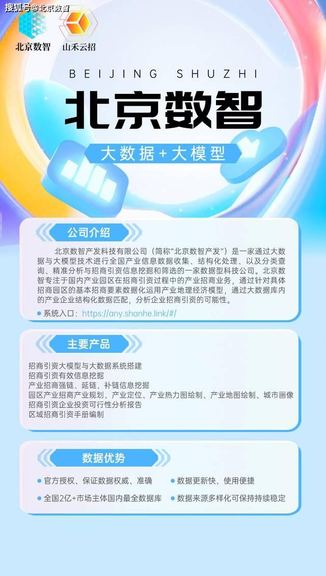 数智产发科技无限公司(简称“数智产发”)是一家通过大数据取大模子手艺进行全国财产消息数据收集、布局化处置、以及分类查询、精准阐发取招商引资消息挖掘和筛选的一家数据型科技公司。数智专注于国内财产园区正在招商引资过程中的财产招商营业,通过针对具体招商园区的根基招商要素数据化使用财产地舆经济模子,通过大数据库内的财产企业布局化数据婚配,阐发企业招商引资的可能性。