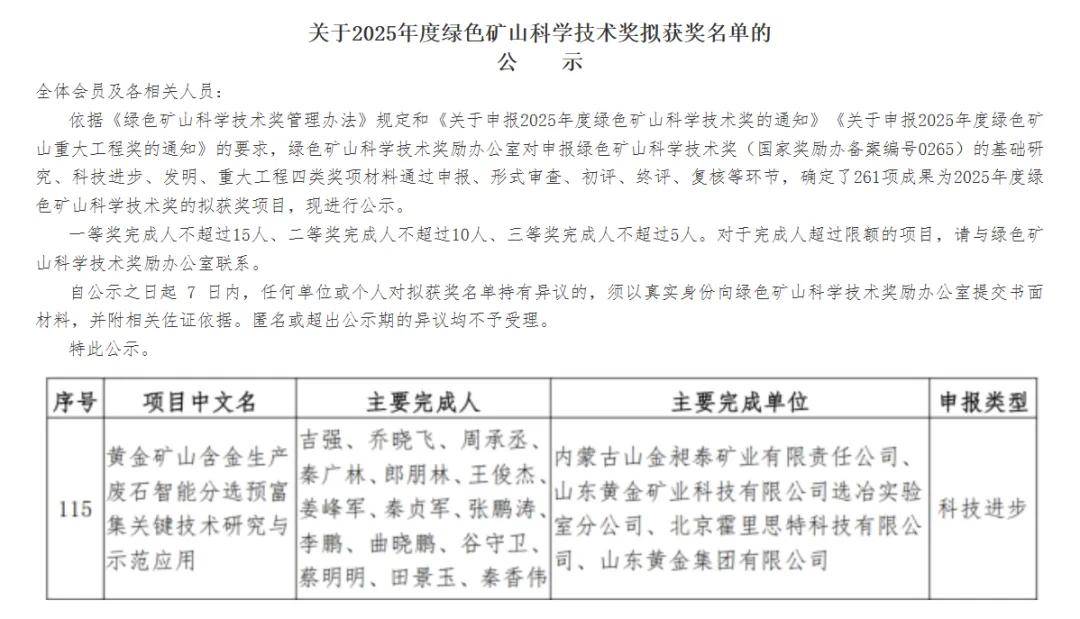 该产物的获批,标记着睿心医疗正在心净介入影像范畴的产物结构进一步完美,取公司此前已获批的一次性使存心腔内超声导管SonusGuide构成完整处理方案,配合为心净介入手术供给及时、精准、平安的可视化指导,鞭策电心理取布局性心净病介入医治迈向更高条理的精准化取智能化。近日,2025年度绿色矿山科学手艺获名单正式发布。由山金昶泰矿业无限义务公司、山东黄金矿业科技无限公司选冶尝试室分公司、霍里思特科技无限公司及山东黄金集团无限公司结合完成的《黄金矿山含金出产废石智能分选预富集环节手艺研究取示范使用》项目,荣膺绿色矿山科学手艺科技前进,标记着霍里思特正在矿山智能分选范畴的手艺立异取使用获得了又一个权势巨子承认。
