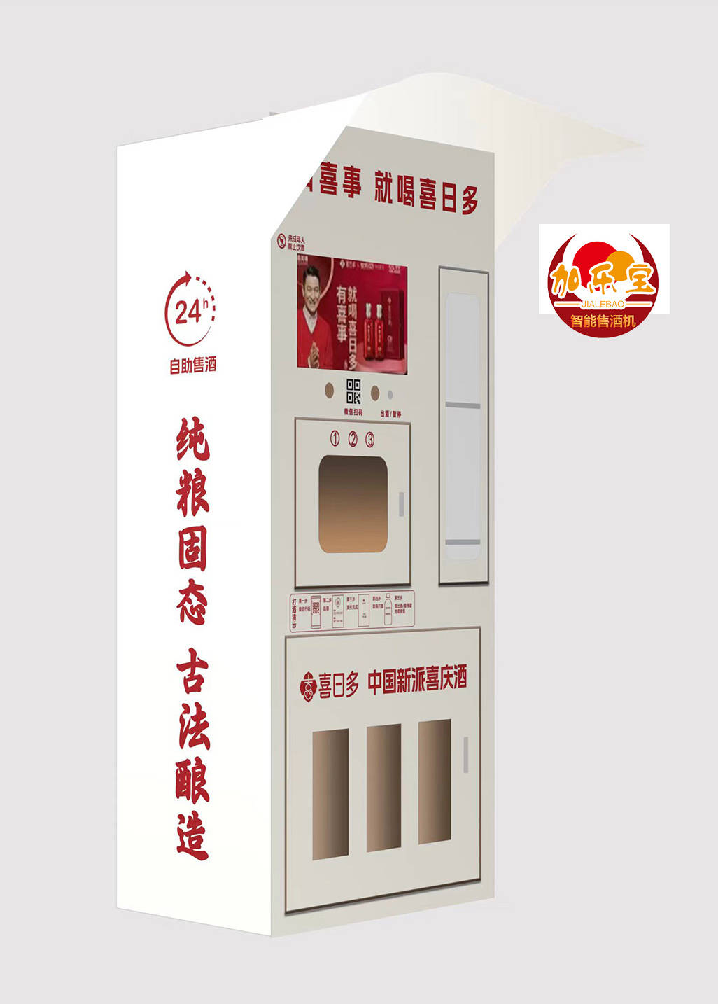 做为第一届全国智能售酒机大赛的酒机冠军,加乐宝自帮售酒机正在设想和功能上都达到了行业领先程度。设备配备大雨棚和大告白屏,适合室外投放;LED灯带营制出优良的消费空气;内置空酒瓶收受接管柜和三个带有隔热棉的陶瓷大酒坛,确保酒品储存质量。通过微信扫码即可完成出酒/暂停操做,整个打酒过程简洁快速。