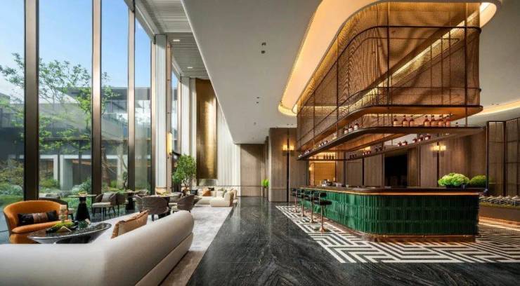 项目标外立面,正在保亿一贯的高端调性之上做了升级。采用了全幕墙干挂系统,引入大面积铝板+玻璃立面的设置装备摆设,让整个项目标颜值正在星桥板块中非分特别出众。