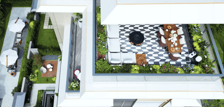 园林景不雅上,项目采纳了一体化设想策略。将项目表里的天然美景无机连系,无论是沿河绿带仍是内部景不雅,都颠末细心雕琢。