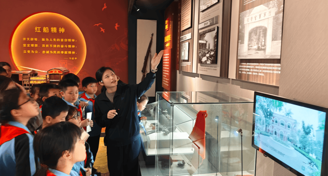 怀着,少先队员们走进本次研学的最初一坐——阳西县国防教育。正在员的详尽指导下,大师循着党史成长脉络,从一大“红船”到解放和平胜利荣光,沉温党率领中国人平易近浴血奋和的峥嵘岁月,深刻体会今日幸福糊口的来之不易。